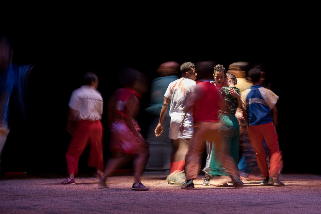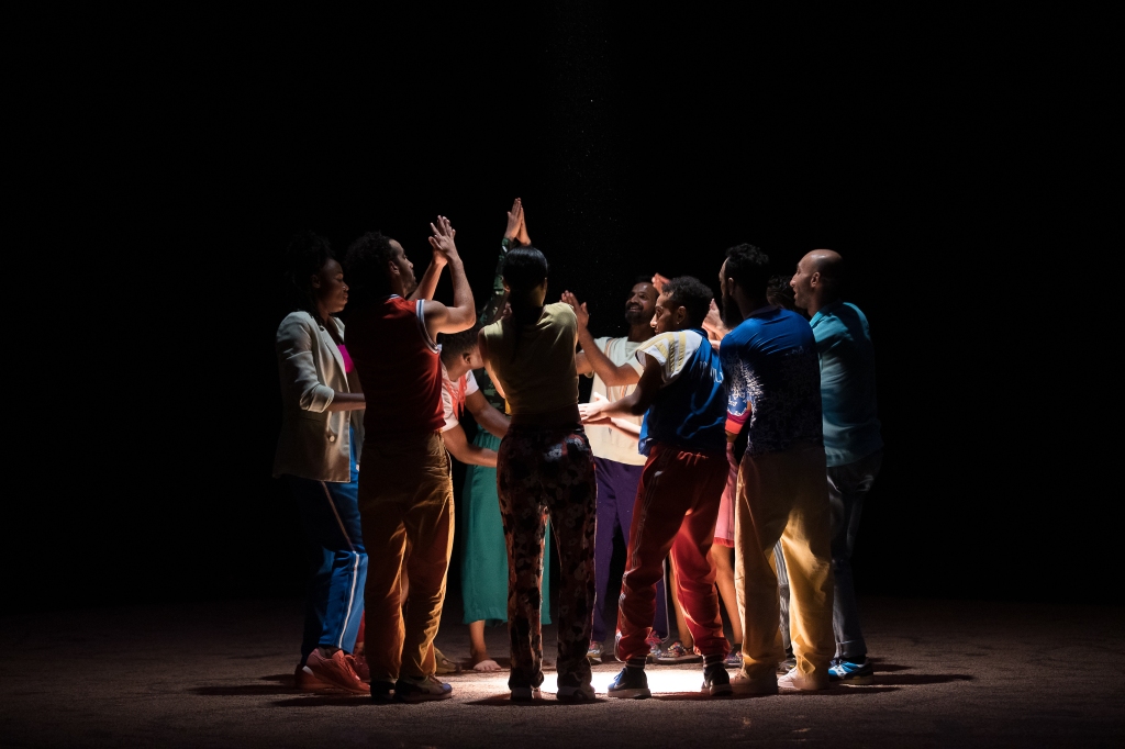 Comme s’il avait enclenché un mouvement, des corps autour de lui se meuvent dans la nuit, font chanter le sol. Ils sont colorés, on dirait des cerfs-volants chassés par le vent. Ils tournoient avant de se ramasser sur eux, d’esquisser des formes. Quand une douche lumineuse se déverse sur eux, on a affaire à des visages beaux, divers et variés. Ils s’appellent Sarath, Meriem, Juliette, Mohamed, Chourouk, Adama, Moad, Fatou, ou encore Angela, ils ont entre 20 et 30 ans. Et ils témoignent du visage de la fraternité que cherchent à rendre les chorégraphes Héla Fattoumi et Éric Lamoureux. Ils sont douze jeunes danseurs originaires du Burkina Faso, d’Égypte, du Maroc, de la Tunisie ou encore de la France. Et ils forment un seul et même corps qui n’a pas l’intention de se séparer. Le spectacle s’appelle Akzak