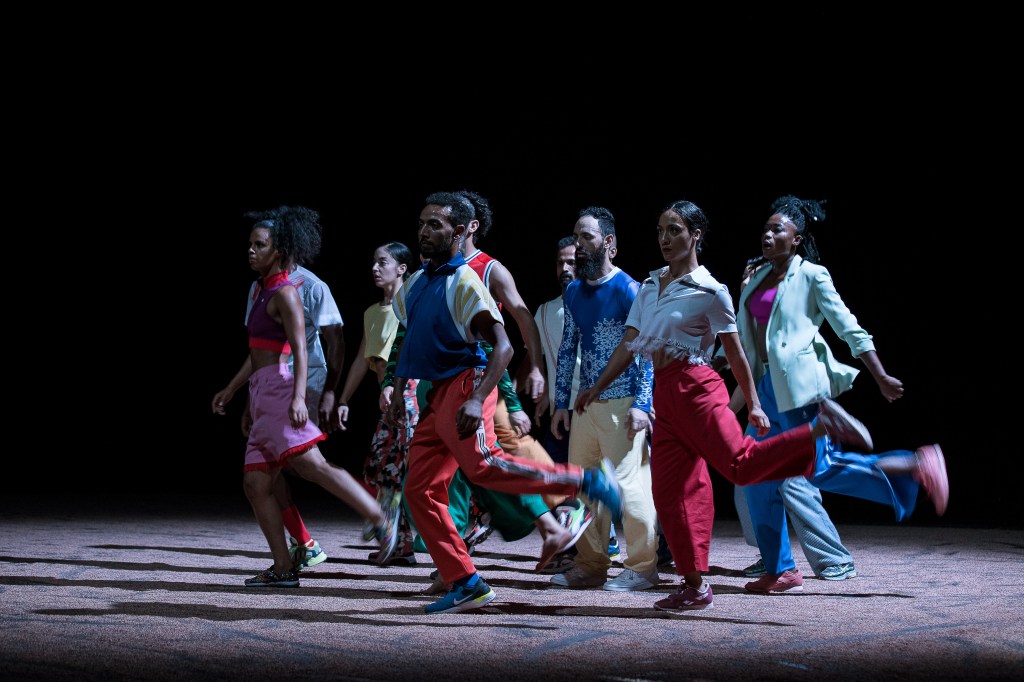 Comme s’il avait enclenché un mouvement, des corps autour de lui se meuvent dans la nuit, font chanter le sol. Ils sont colorés, on dirait des cerfs-volants chassés par le vent. Ils tournoient avant de se ramasser sur eux, d’esquisser des formes. Quand une douche lumineuse se déverse sur eux, on a affaire à des visages beaux, divers et variés. Ils s’appellent Sarath, Meriem, Juliette, Mohamed, Chourouk, Adama, Moad, Fatou, ou encore Angela, ils ont entre 20 et 30 ans. Et ils témoignent du visage de la fraternité que cherchent à rendre les chorégraphes Héla Fattoumi et Éric Lamoureux. Ils sont douze jeunes danseurs originaires du Burkina Faso, d’Égypte, du Maroc, de la Tunisie ou encore de la France. Et ils forment un seul et même corps qui n’a pas l’intention de se séparer. Le spectacle s’appelle Akzak